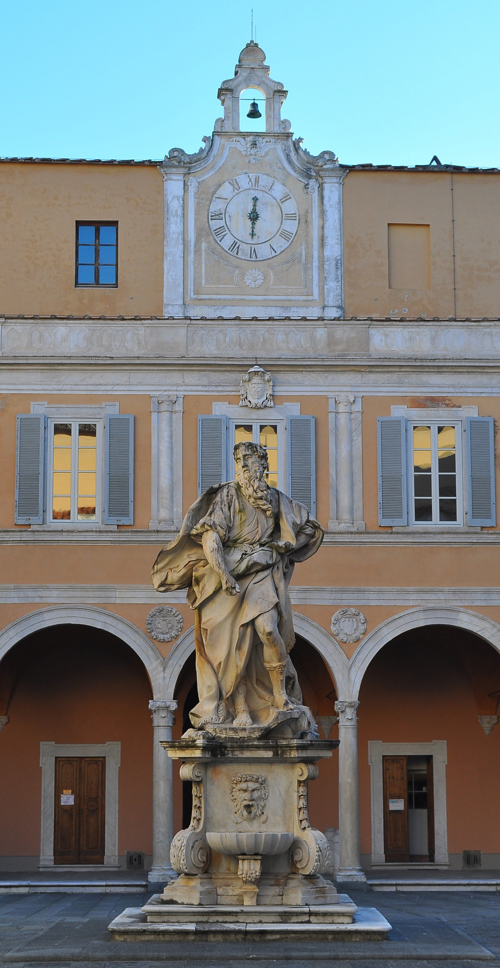 The buildings on the square today are palazzo della Carovana (1562-64), the Knights church of St. Stephen (1565-69), palazzo della Canonica (1566), palazzo del Consiglio dei Dodici (1603), palazzo Puteano (1594-98), the Church of S. Rocco (1575) and palazzo dell’Orologio (1605-8). A statue of Cosimo I (1596) by Pietro Francavilla stands in the centre.
