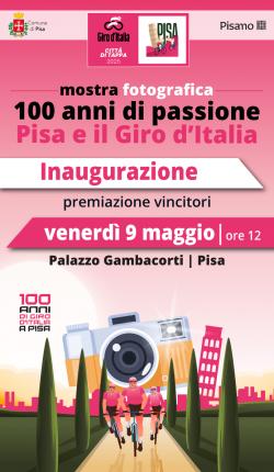 The photo contest "100 years of passion. Pisa and the Giro d'Italia" is promoted by the Municipality of Pisa without any profit, in order to promote the appointment of 20 May 2025 when Pisa will be stage city of the 108th edition of the Giro d'Italia. The last time it happened was in 1980 and the first time that Pisa hosted the Giro had happened in 1925, exactly 100 years ago.