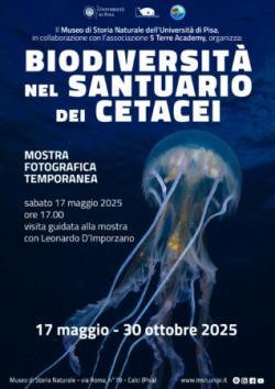 From 17 May to 30 October 2025, the Natural History Museum of the University of Pisa will host ‘Biodiversity in the Cetacean Sanctuary’, a temporary photographic exhibition curated by the ‘5 Terre Academy’ association. Through explanatory panels and extraordinary underwater images, taken by some of Italy's most talented photographers, visitors can be surprised by the beauty of the underwater world and reflect on the urgency of preserving it.