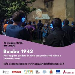 Sunday, 18 May 2025 sees the return of ‘Bombs 1943’, a night-time film tour that uses projections and audio to bring the history of the city, specifically dedicated to 31 August 1943, back to life. These tours are currently unique and have also been developed as part of European projects and collaborations with the United States. The guide is equipped with a portable projector, integrated with a media player, a transmitter and a one-footer, while the audience follows the stories with immersive hi-fi wireless headphones. The result is a highly immersive experience, with travelling projections and audio narratives, combining - between emotion and education - cinema, walking and cultural tourism.