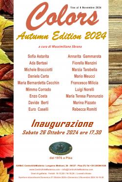 Opening on Saturday, October 26, 2024 at 17.30 in the exhibition spaces of the Gallery of Modern and Contemporary Art CentroArteModerna of Pisa (GAMeC), curated by Massimiliano Sbrana, on the Medicean Lungarno at no.26, the collective exhibition "Colors: Autumn Edition".