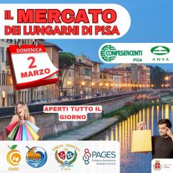 On Sunday, 2 March 2025, the Pisa Lungarni market will be held. The event, organised by Confesercenti and ANVA, will take place all day long and will be held on the Lungarno Pacinotti and Mediceo to Piazza Mazzini.