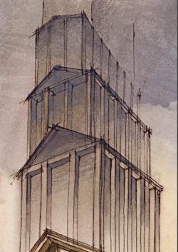 Tchoban’s interest in the multifaceted phenomenon of tower construction is evident in the abundance of drawings in which the architect depicts these buildings, imaginary and real towers or a combination of both. Drawing, with its ability to make the imaginary as vivid as the real, proves to be the most suitable medium for the artist to express his thoughts on architecture.
