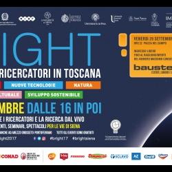 In Tuscany, "Bright 2017" is celebrated with the support of the Region, the involvement of the Universities of Pisa, Florence, Siena, Siena-Foreigners, Research Centers and High Schools and offers a rich bill of events, initiatives and shows that will take place from the afternoon until late at night in Arezzo, Calci, Florence, Grosseto, Lucca, Pisa, Pontedera, Portoferraio, Prato, Siena and Viareggio.
