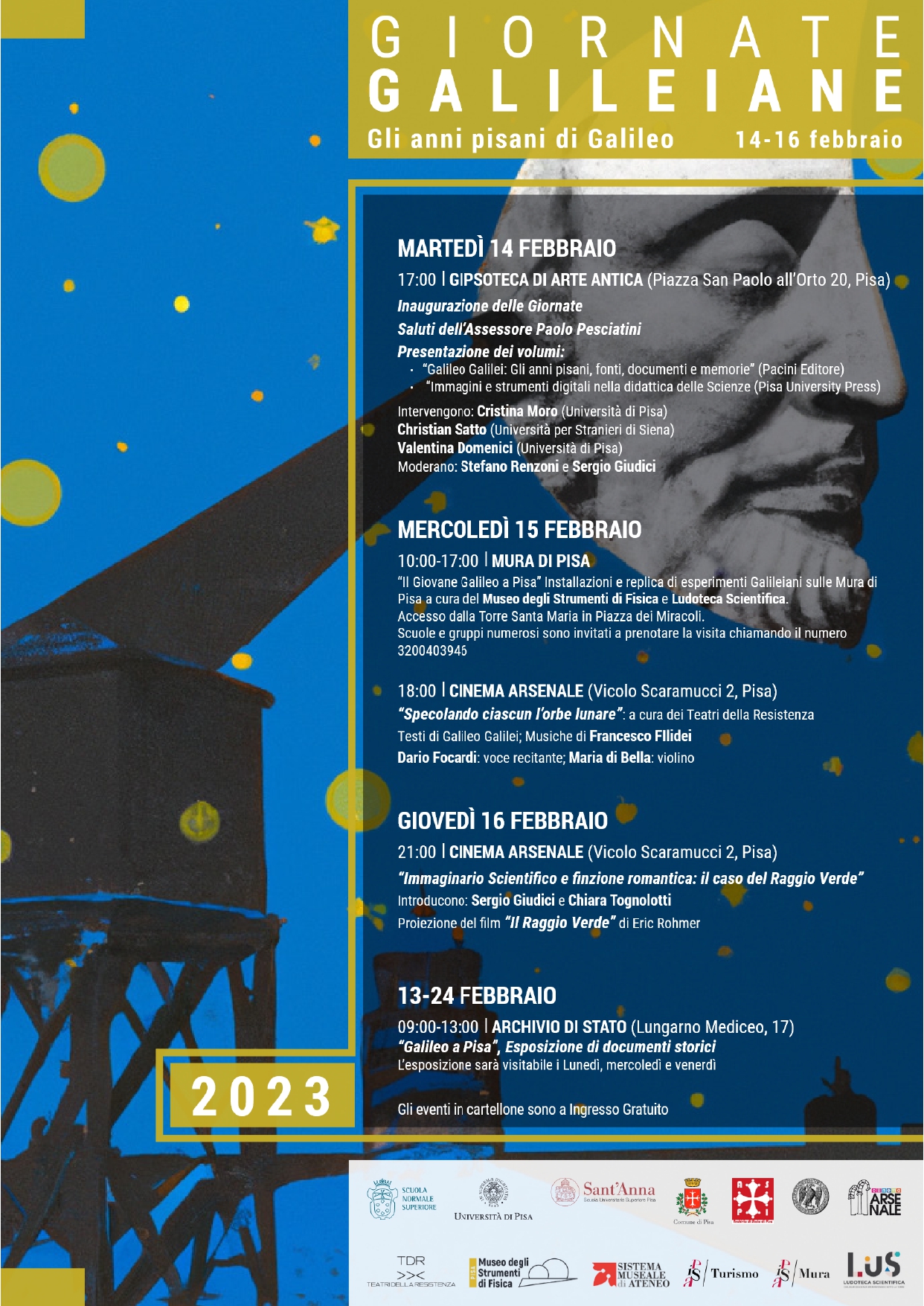 For the fifth year, the city celebrates the great scientist Galileo Galilei on the day of his birth, which took place in Pisa 459 years ago, i.e. 15 February 1564, with a programme of events involving the Municipality, the University of Pisa, the Scuola Normale Superiore and the Scuola Superiore S. Anna for a few days.