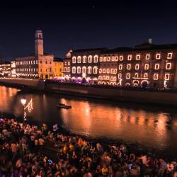 The evening is completed by a series of fireworks fired around eleven by the citadel and in recent years also by some floating platforms placed on the Arno river creating the the luminiscent flames placed on the Lungarni buildings a unique scenery.