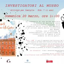 In compagnia di una guida speciale e muniti di matite e lente d'ingrandimento, i ragazzi andranno alla scoperta delle tracce del passato e di alcune opere della collezione del Museo. Infine, con l'intuito da investigatori, si divertiranno a ricostruire un'opera d'arte andata in mille pezzi.