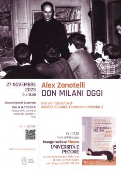 The Scuola Normale Superiore is celebrating the 100th anniversary of the birth of Don Lorenzo Milani with a conference and exhibition dedicated to the prior of Barbiana. Father Alex Zanotelli, an Italian missionary who was inspired by the figure and work of Don Milani throughout his life, will recall his great humanity and attention to the underprivileged in a public lecture entitled 'Don Milani today', at 3 p.m. on Monday 27 November in the Sala Azzurra of the Palazzo della Carovana in Pisa, with free admission.