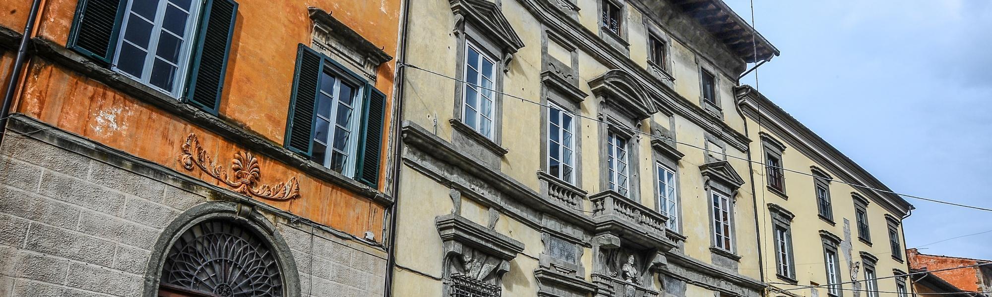 Particolari palazzo Quaratesi (M. Pileri)The building is part of the program of the 'law of convenience', issued by Cosimo I de’ Medici in 1551, which authorised the expropriation of buildings and land for the benefit of those wishing to build or renovate existing houses. The façade, designed by Pietro Francavilla (1593-1597), a student of Giambologna, which alternates the showy vertical bands, created by the large gabled windows, to the hard horizontal lines given by the string courses, highlights the depth of the staircase leading to the door, enriched by the bust of Ferdinando de’ Medici. The concave aspect, given by the union of pre-existing buildings (11th-12th century), accentuates the size of the large curved tympanum of the central French door, which seems to emerge from the balcony. The building fully expresses the will of the Grand Duke, who refused whimsical ornamental solutions by virtue of a fifteenth-century rigour. Proof of this purity is the almost cubic volume of the entire building, which served as the seat of the Pisan charity called Pia Casa della Misericordia. The interior of the building is decorated with frescoes by Gian Domenico Ferretti (17th century) and Tommaso Tommasi (18th century). Property of the Quaratesi marquises, today the building houses the Academy of Fine Arts, specialised in the multimedia creation sector.
