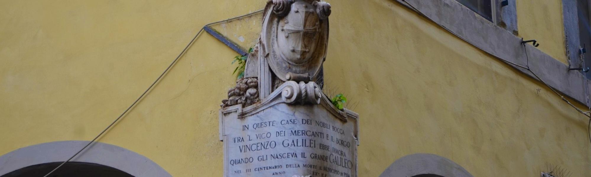 Vincenzo Galilei was born in Santa Maria a Monte (Pi) in 1533 from a noble family and was one of the greatest musical theorists in Italy. He was master luthier and musical teacher and this was the reason that led him to Pisa in 1562, the year in which he married Giulia Venturi degli Ammannati (mother of Galileo Galilei). Indeed, arrived in the city, he opened a music schola. 'Ricordo faccio io Giuseppe Bocca come hoggi questo di’ IX di luglio 1564 al pisa- no, abbiamo appigionato a Vincentio Galilei, m° di musica da Fiorenza, la casa N.ra posta nel chiasso dei Mercanti, per anno uno, il quale debba accominciar il primo di’ di Agosto 1564 per pregio di scudi 12 d’oro l’anno…' (Note by Giuseppe Bocca, found in 1893 by Count Alfredo Venerosi della Seta among the papers of the Bocca family). We therefore know from a rental contract, registered in the deeds of Pisan notary Maria Giovanni Simone di Giovanni Mazzuoli, that, in the year 1563 (the date of the quotation must be read in Pisan style, according to the use of the ab Incarnatione calendar), he settled in this house, between via Mercanti and Borgo Stretto, and presumably lived here until 1574, the year of his transfer to Florence. Among his most important studies was the one on the correlation between music and mathematics and how the diversity of physical characteristics can produce different acoustic results.