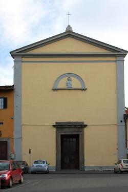 La fachada enlucida, con cubierta a modo de cabaña, está embellecida con un luneto de piedra serena en cuyo centro se encuentra el relieve de mármol de San Torpe, realizado por el escultor contemporáneo Antonio Fascetti.