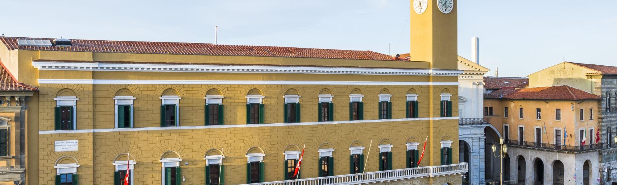 En 1785, dada la necesidad de destinarlo parcialmente a albergar las cárceles, la comunidad pisana se dividió entre la idea de dejar visible la impronta todavía medieval, conferida al palacio por las grandes ventanas políforas de gusto gótico de la primera planta y por la triple galería de la segunda planta, y la idea de adaptar su aspecto al nuevo estilo ya evidente en las vecinas galerías de Logge di Banchi. Al no llegar a un acuerdo, se decidió temporalmente aplazar las obras e intervenir solo elevando la antigua Torre de la Justicia para convertirla en la Torre del Reloj. No fue hasta 1821 cuando se aprobó el proyecto del arquitecto Alessandro Gherardesca para la completa reorganización del palacio y la uniformización con el aspecto que progresivamente habían asumido las orillas del río Arno. La nueva fachada fue realizada en formas rústicas toscanas, con un mayor desarrollo longitudinal, y alineando la base de la torre con el palacio. La parte frontal fue decorada con un friso de mármol de Michele Van Lint que sintetizaba estilísticamente los honores granducales y los antiguos fastos de la ciudad.