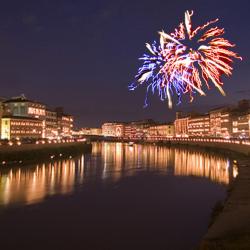 La serata viene conclusa con una serie di fuochi d'artificio sparati intorno alle undici e mezza dalla Cittadella e negli ultimi anni anche da alcune piattaforme galleggianti poste sul fiume Arno creando con le fiammelle dei lumini poste sugli edifici dei Lungarni una scenografia unica.