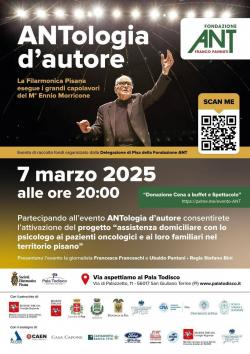 Per finanziare il progetto “assistenza domiciliare psicologica ai pazienti oncologici e ai loro familiari” la Delegazione di Pisa di Fondazione ANT ha organizzato un grande evento ANTologia d’autore (cena a buffet e spettacolo), previsto per venerdì 7 marzo alle ore 20:00 presso il Pala Todisco a San Giuliano Terme in Provincia di Pisa.