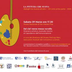 Sabato 29 marzo 2025, alle ore 17.30, il Museo Nazionale di San Matteo ospiterà lo spettacolo "Dal ciel venne messo novello. Itinerario artistico musicale intorno al Capodanno dell'Annunciazione", con esecuzioni musicali del Concentus Lucensis.