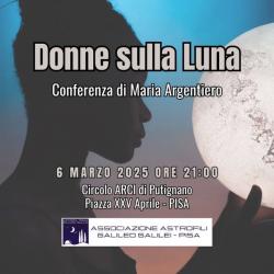 Giovedì 6 marzo 2025, alle ore 21.00, presso il Circolo Putignano, l'Associazione Astrofili Galileo Galilei terrà l'incontro divulgativo "Donne sulla Luna", a cura di Maria Argentiero.