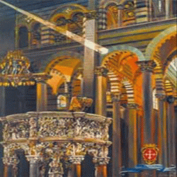 Nel Duomo un raggio di sole entrava da una finestra detta Aurea colpendo una zona prossima all'altare maggiore a mezzogiorno in punto. Col tempo tale orologio è venuto meno a causa delle pesanti modifiche del XVII secolo. Il meccanismo solare fu ripristinato in seguito tra il XIX e il XX secolo, sfruttando una differente finestra e stabilendo come bersaglio una mensolina a forma di uovo posta sul pilastro accanto a dove fu riassemblato il pergamo di Giovanni Pisano nel 1926.