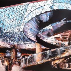 La storia del Louvre, esempio eterno dell’arte, diventa una rielaborazione poetica che ci conduce nei territori del sogno e della leggerezza. Le pietre, i marmi bianchi e grigi della Chiesa della Spina si riflettono in modo superbo nei dipinti di Gnocchi, dando vita a uno splendido viaggio emozionale.