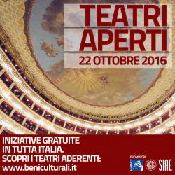 Sabato 22 ottobre sarà il giorno di “Teatri aperti”, iniziativa promossa dal Ministero dei Beni e delle Attività Culturali e del Turismo e dall’Associazione Generale Italiana dello Spettacolo, in collaborazione con SIAE.