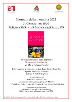 Tra le iniziative in programma la presentazione del libro di poesie "La voce di Auschwitz" di Maria Cristina Coppini.