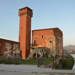 Il Castellaccio dall'attuale Ponte della Cittadella (L. Corevi, Comune di Pisa)Pons maris o novus degatie maris collegava il Castellaccio, dal quale svetta la TorreGuelfa, e la portaDegaziaNuova e i due archi d’ingresso sono ancora visibili. Il ponte della Cittadella attestato nel 1327, in origine di legno, fu ricostruito nel 1354 in pietra a cinque archi, uno dei quali più ampio e più alto per permettere il passaggio delle imbarcazioni. Nel corso dei secoli il ponte fu nuovamente restaurato, con interventi degli architetti FilippoBrunelleschi, prima, e CosimoPugliano, poi. Crollato a causa di una piena nel 1869, fu ricostruito in ferro poco più ad ovest e poi distrutto nuovamente durante la guerra. L’attuale costruzione è postbellica.