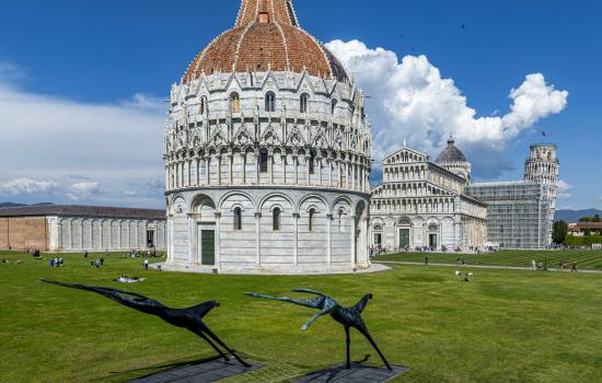 Lo splendore eburneo di Piazza del Duomo (o Piazza dei Miracoli), simbolo della ricchezza e del fasto della Repubblica Marinara di Pisa, con i quattro monumenti più evocativi della città; il Battistero (dall’acustica unica), il Camposanto Monumentale, impreziosito da straordinari affreschi, la Cattedrale di Santa Maria Assunta, capolavoro assoluto dell'architettura romanico-pisana, e il celeberrimo Campanile, o Torre di Pisa, conosciuto in tutto il mondo per la particolare pendenza, potrebbero essere sufficienti a stupire il visitatore, che, tuttavia, salendo sul camminamento medievale, che costeggia la piazza, ha la possibilità di osservare, da un’inedita prospettiva, l’intera città.