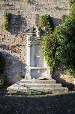 La fontana marmorea di stile neo-classico venne realizzata dall’ingegnere Bombicci nei primi dell’800. E’ costituita da un’imponente colonna scanalata, posta su una base di forma ottagonale e circondata da 16 colonnine dello stesso materiale.