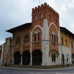 Ex stazione C.P.T. (L. Corevi, Comune di Pisa)La demolizione delle mura di Pisa ha risparmiato il tratto che si estende su via Nino Bixio, dove è situato un castelletto neo-medievale, una volta stazione capolinea dellaferrovia che da Pisa conduceva al litorale, passando per le località San Piero a Grado, Marina di Pisa, Tirrenia, Calambrone per terminare nella città di Livorno, presso la barriera Margherita. La costruzione risale al 1932 e il trammino, così veniva chiamato dai pisani il piccolo treno, rimase attivo fino al 1960. Lungo le mura interne sono ancora visibili i cartelli circolari con i numeri di riferimento alla sosta dei vagoni, oltre a vecchi locali di servizio come i bagni pubblici, ormai in disuso. Un tempo qui si apriva la porta Sant’Antonio.