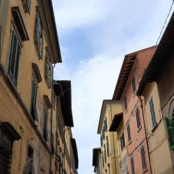 Scorcio Via San Martino (R. Cardini)Per avere un’idea della ricchezza della città di Pisa nel XIII secolo basta passeggiare lungo l’asse viaria che collega piazza Guerrazzi a Corso Italia, via San Martino. Sontuosi palazzi del XV e del XVI secolo mostrano ancora le strutture delle case torri medievali, con ghiere in cotto decorate con motivi geometrici vari e bacini ceramici. Questa via, in epoca romana, costituiva il tracciato cittadino della via æmilia Scauri, strada costruita da Marco Emilio Scauro nel 103 a.C. che, dalla via Aurelia, arrivava fino alle Gallie, e nel medioevo fu denominata ‘carraiamaiora’, con botteghe artigiane, magazzini, abitazioni di mercanti provenienti da tutto il mondo.