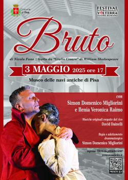 L’iniziativa è promossa dal Comune di Pisa e dalla Fondazione Teatro di Pisa, in collaborazione con la direzione del Museo delle Navi Aantiche di Pisa e il Festival internazionale Teatro Romano di Volterra. L’ingresso allo spettacolo è a titolo gratuito su prenotazione a questo link https://www.eventbrite.it/e/biglietti-bruto (in vendita dal 29 aprile 2025 ore 9:00).